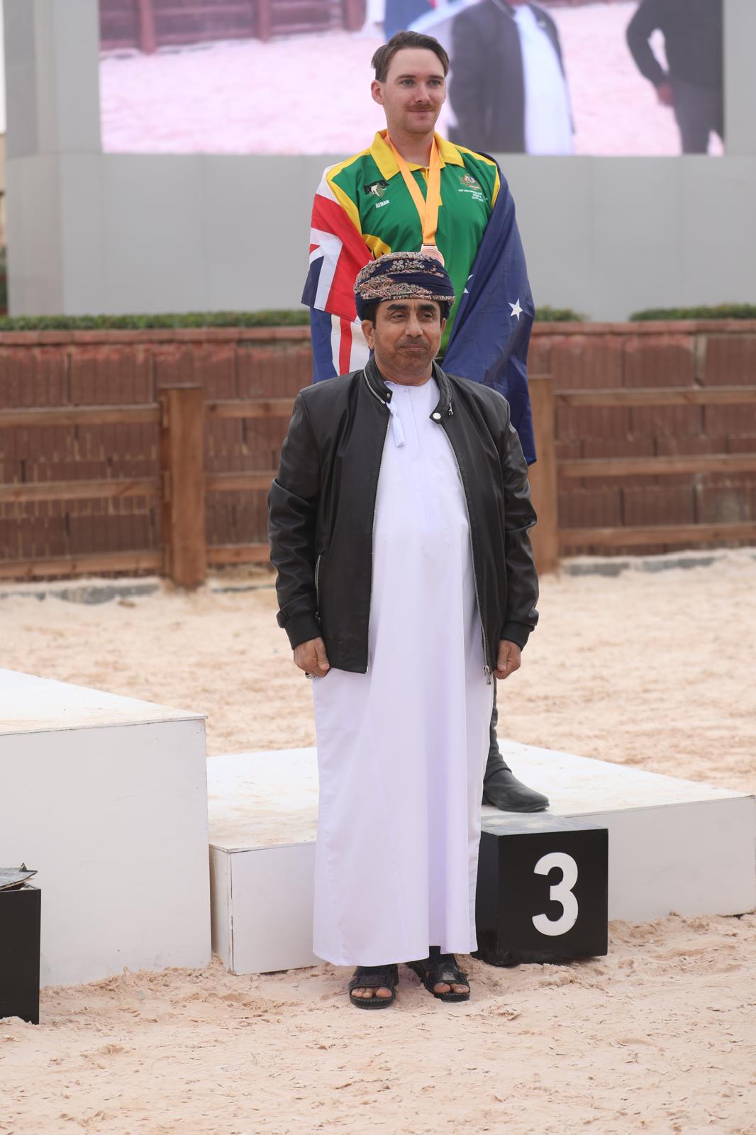 وفي اليوم الثاني منافسات السيف حصل على المركز الأول المتسابق : عيسى عبدالمجيد البلوشي من الإمارات